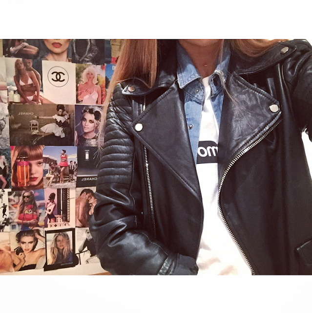 A slightly gothic and grungy look contrasting the white slogan tee from Missguided and the ripped blue denim shirt from Forever21. I love this leather biker jacket from Zara I was lucky enough to get 20% off this jacket as I bought it on black friday, even though it is a little pricey it is defiantly worth the money!! I wore my washed black joni jeans which I eneded up putting rips in the knees myself and my chunky black Dr.Martens to complete this look.